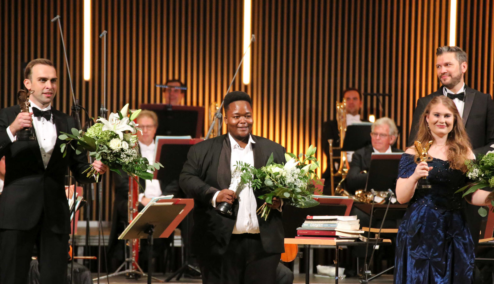 Modestas Sedlevicius came away with the Bronze Victoria as well as 5000 euros in cash, and people in Würzburg are already looking forward to his debut role at the Main-Franconia Theater. He was presented with this special prize donated by the Philharmonic Orchestra, by Music Director Enrico Calesso.